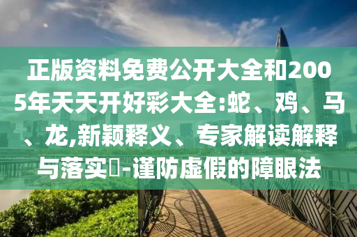 关于拆穿“正版资料免费公开大全”和“2005年天天开好彩大全:蛇、鸡、马、龙”的新颖释义、专家解读解释与落实,以及谨防虚假的障眼法的全面解析